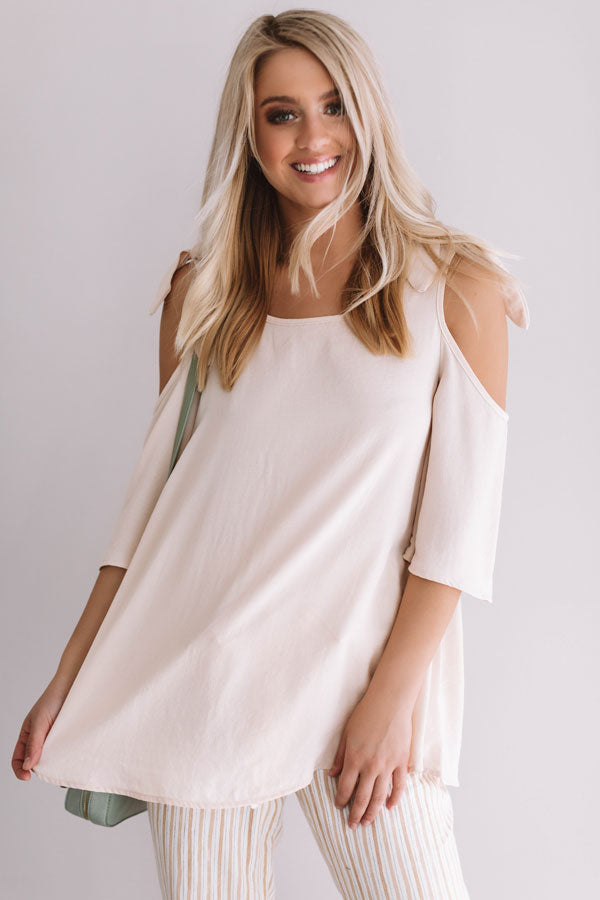 When your gal pals call you up for some cocktails, this iced latte shift top will be your go-to piece! It has shoulder cutouts, straps that tie, and a flowy fit! Pair with some denim jeans and neutral chunky heel for a bold girls night out look! Measurements