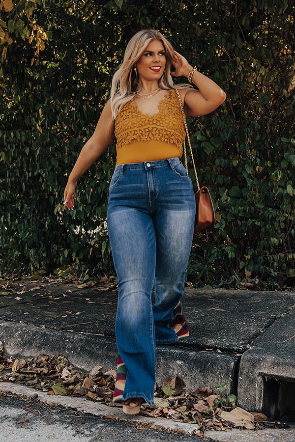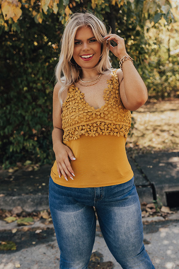 Be a crochet cutie in our "Call Me Yours' crochet tank! Features lightweight mustard colored material with floral crochet feature, v-neckline, adjustable double spaghetti straps with back crisscross detail, and a flattering silhouette that falls into a straight hemline.