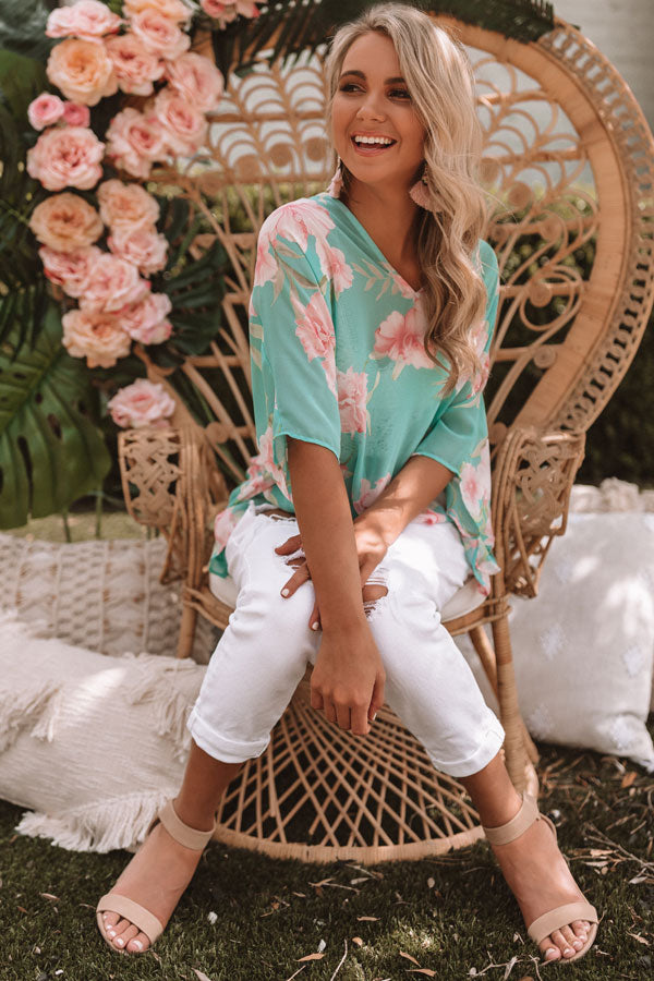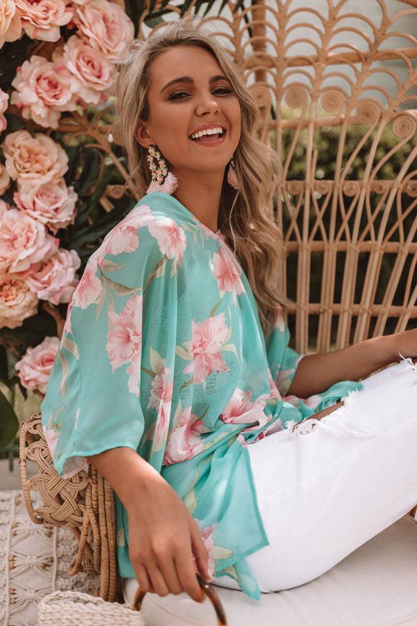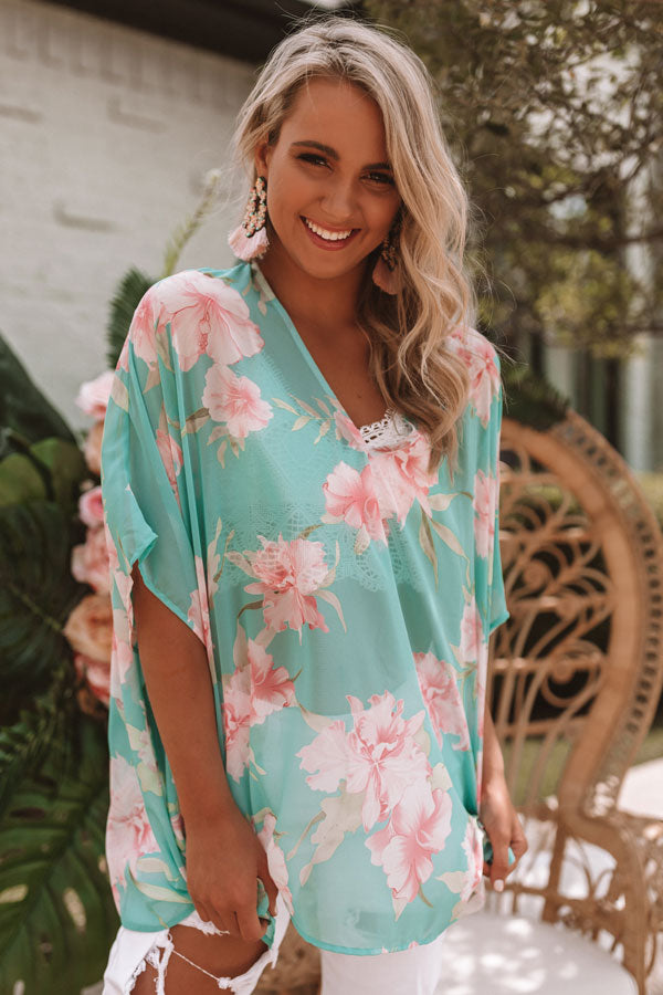 Call The Haute-Line Floral Tunic In Ocean Wave