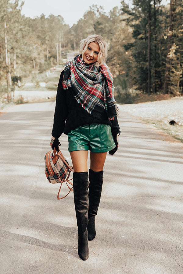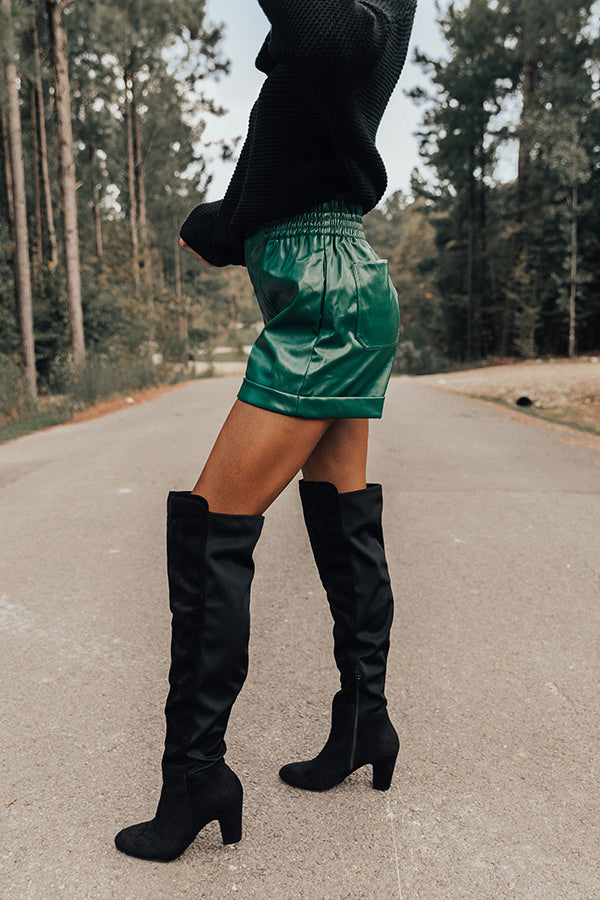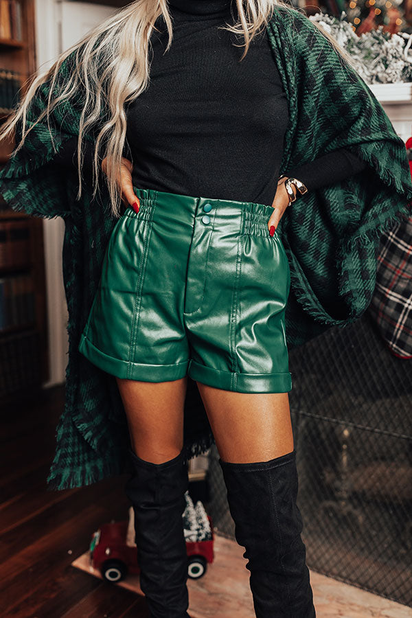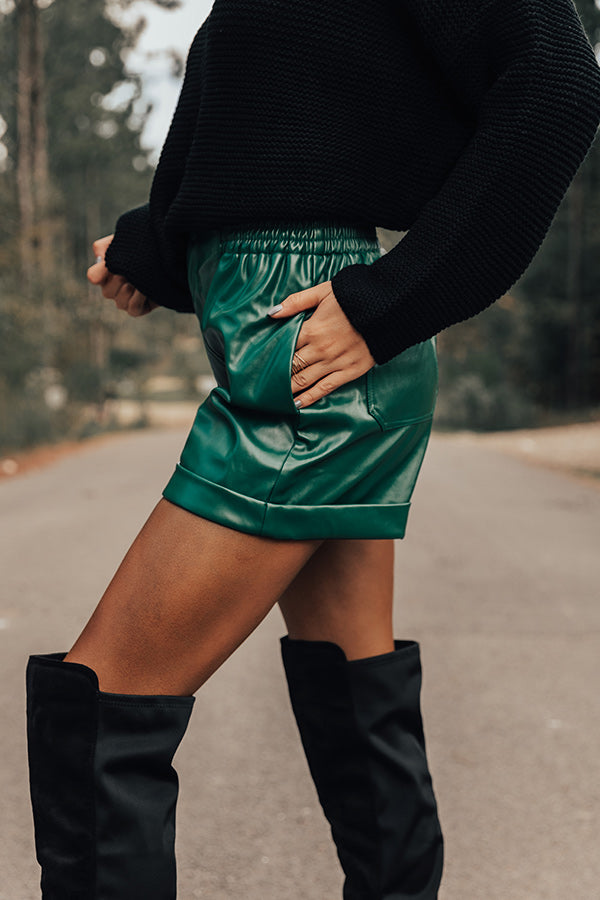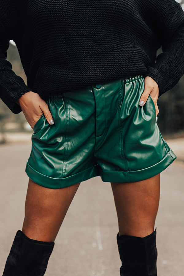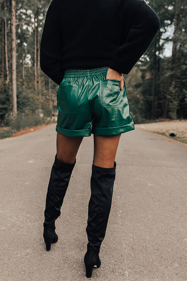 Called To Be Cute Faux Leather Shorts In Hunter Green
