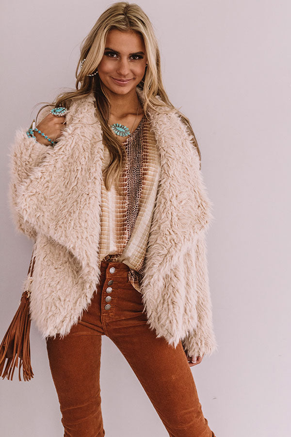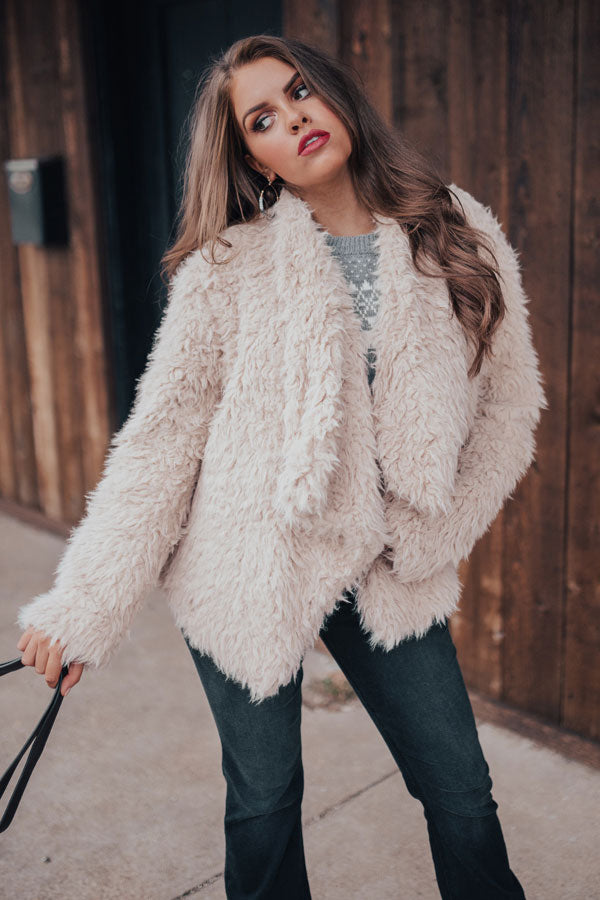 "Calling all fashionistas!" We have the PERFECT neutral hued teddy jacket to keep you looking stylish and warm! It features ultra soft and thick faux fur material, a draped open flap front, long loose sleeves, hidden side pockets, and a relaxed silhouette that falls into an uneven hemline! You can style this versatile piece with just about anything from a basic tank to a sweater, jeans to skirts or dresses, booties to wedges or sandals, clutches to totes, and hats to earrings! Measurements