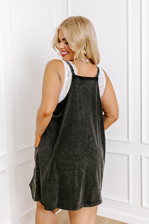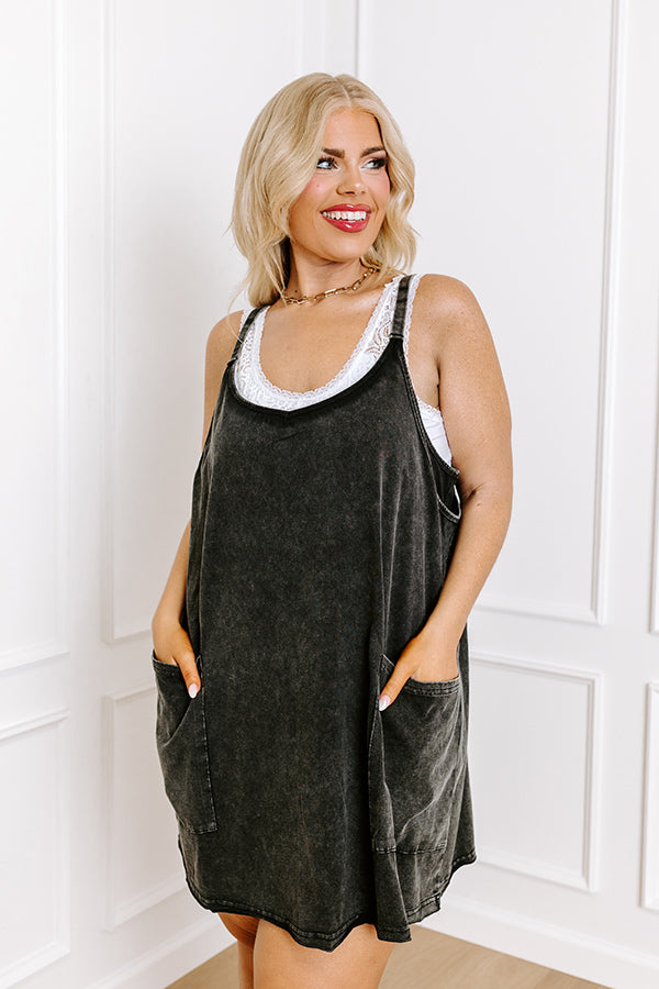 Calm Energy Mineral Wash Romper Dress in Vintage Black Curves