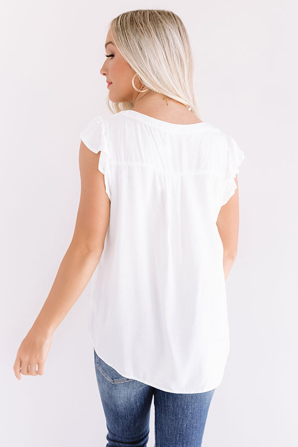 You are sure to be someone's crush when you wear this darling white shift top featuring lightweight breezy material, a high rounded neckline with a v-notched cutout, short ruffled cap sleeves, and a relaxed silhouette that falls into a rounded hemline! We have styled this casual cutie with some distressed skinnies, neutral heels, and a white embellished woven clutch, but you can also wear it with some frayed black shorts, "The Kamryn Stripe Sandal in Black," and our "Tropic Occasion Hat!" Measurements