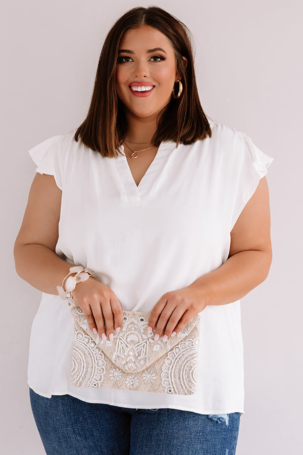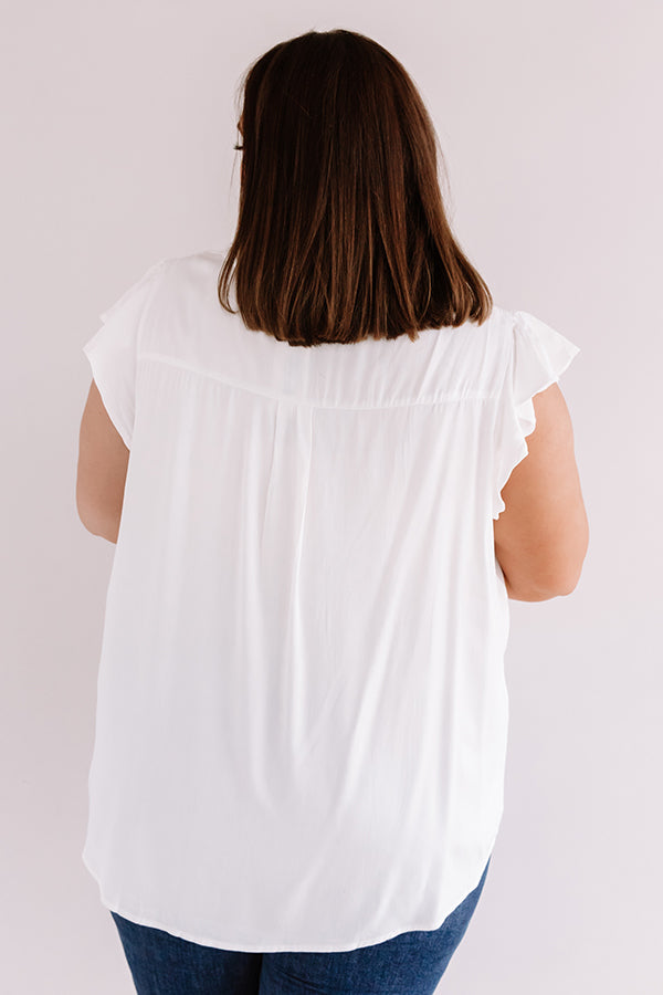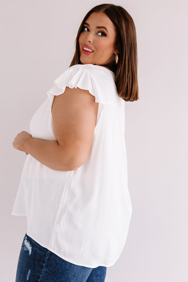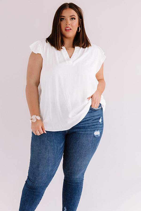 Plus Size - You are sure to be someone's crush when you wear this darling white shift top featuring lightweight breezy material, a high rounded neckline with a v-notched cutout, short ruffled cap sleeves, and a relaxed silhouette that falls into a rounded hemline! We have styled this casual cutie with some frayed skinnies, neutral heels, and an embellished clutch, but you can also wear it with some distressed black shorts, "The Allen Wedge in Snake Print," and our "Sunshine Suite Sunnies in Black!" Measurements