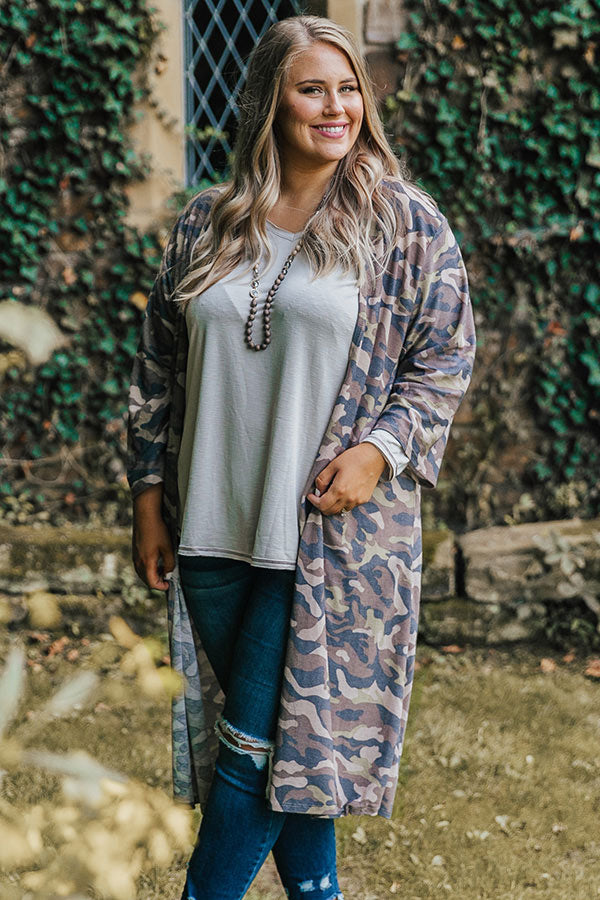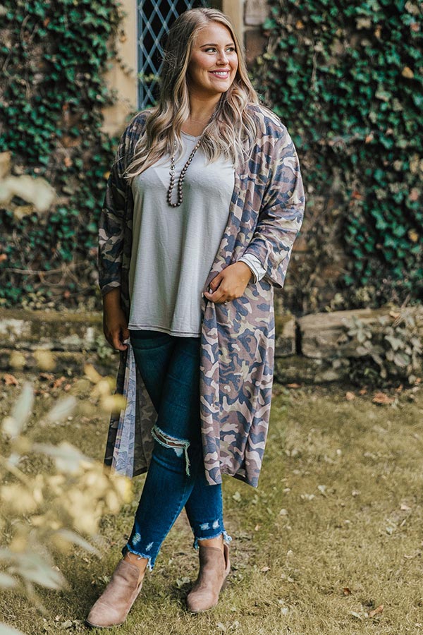 Plus Size - We can't stop crushing on all of our cute new camo arrivals! This divine mocha cardigan features soft material, loose quarter length sleeves, and a lightweight midi-length open front silhouette that falls into a straight hemline! It is easy to slip on over any of your favorite basics from a basic tank to a sweater, jeans to dresses, wedges to sandals, clutches to totes, and hats to earrings! Plus, as an added bonus, if you come home with camo, then maybe it will disguise itself and your husband won't know you've been online shopping AGAIN!