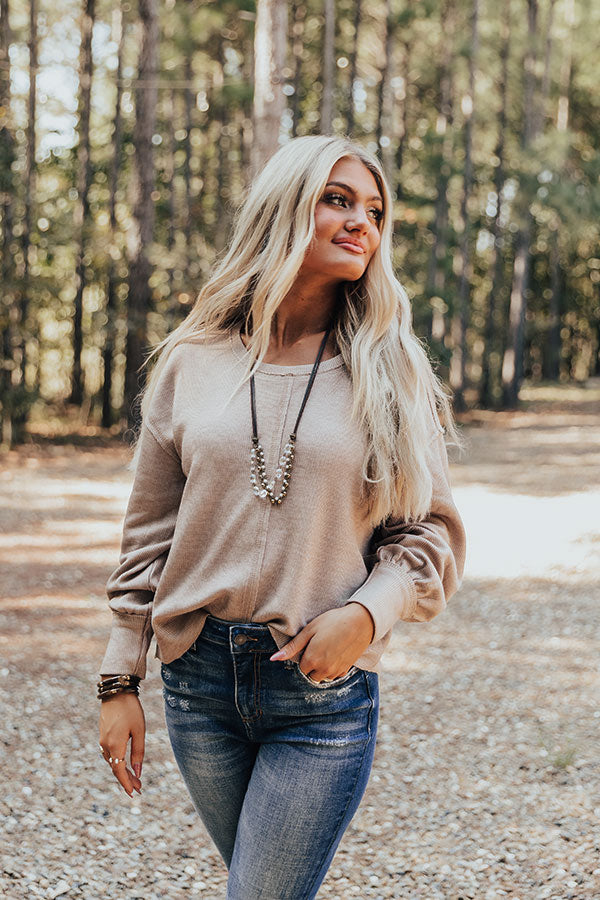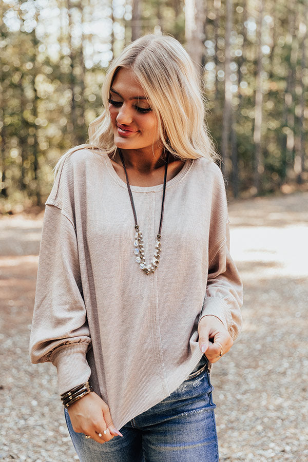 Keep it simple but stylish in our versatile taupe colored 'Can You Hear The Music Shift Top' featuring soft lightweight material, a rounded neckline, long bubble sleeves with fitted cuffs, and a slouched silhouette that falls into a straight hemline! Measurements