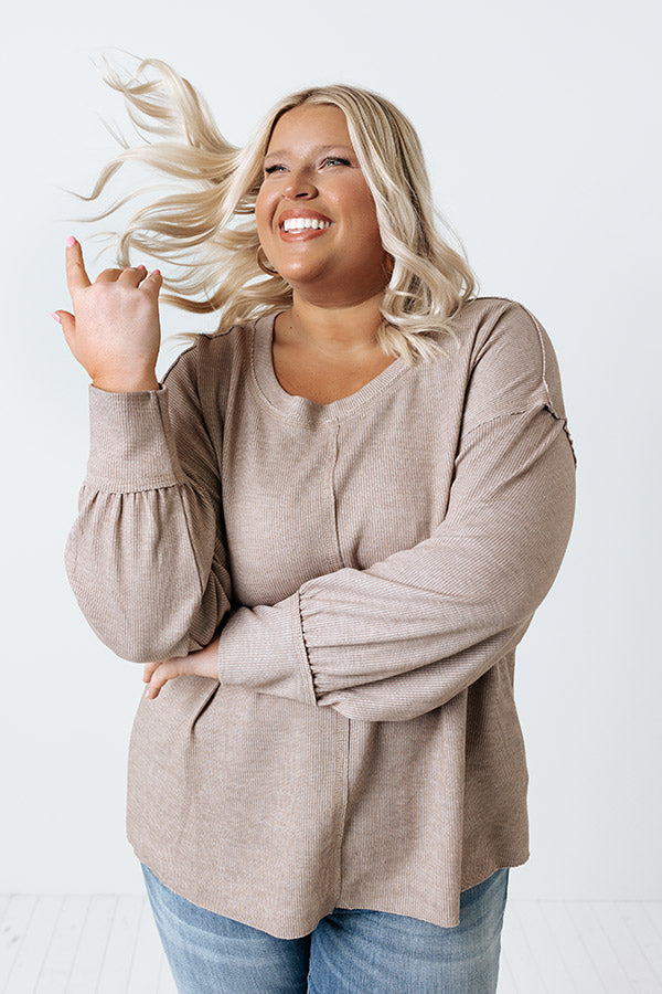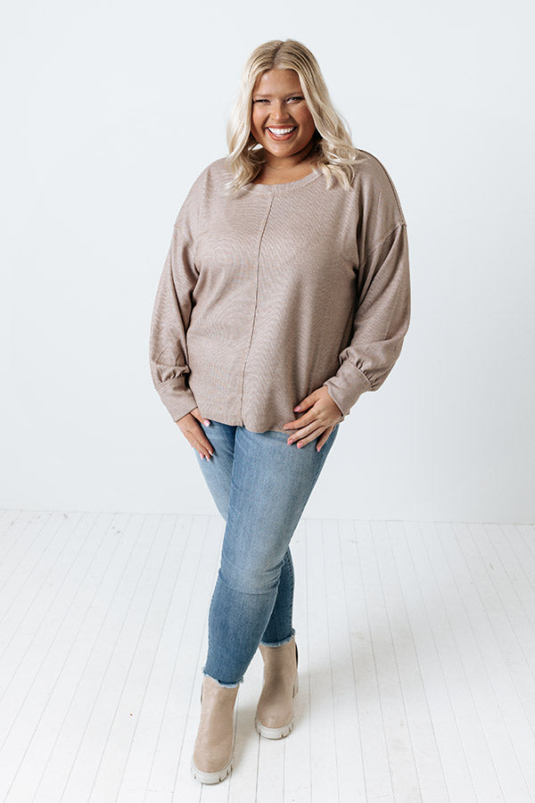 Keep it simple but stylish in our versatile plus size taupe colored 'Can You Hear The Music Shift Top' featuring soft lightweight material, a rounded neckline, long bubble sleeves with fitted cuffs, and a slouched silhouette that falls into a straight hemline!