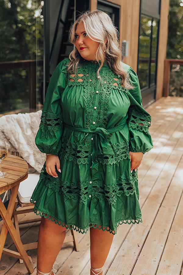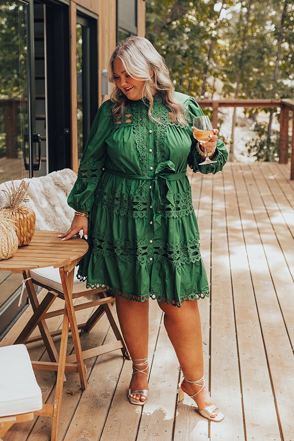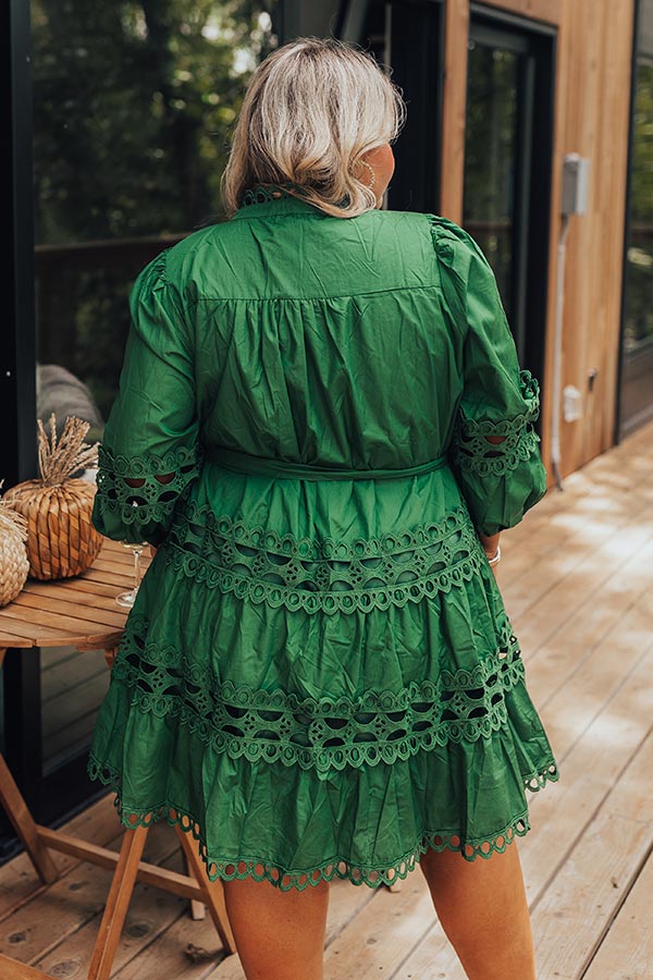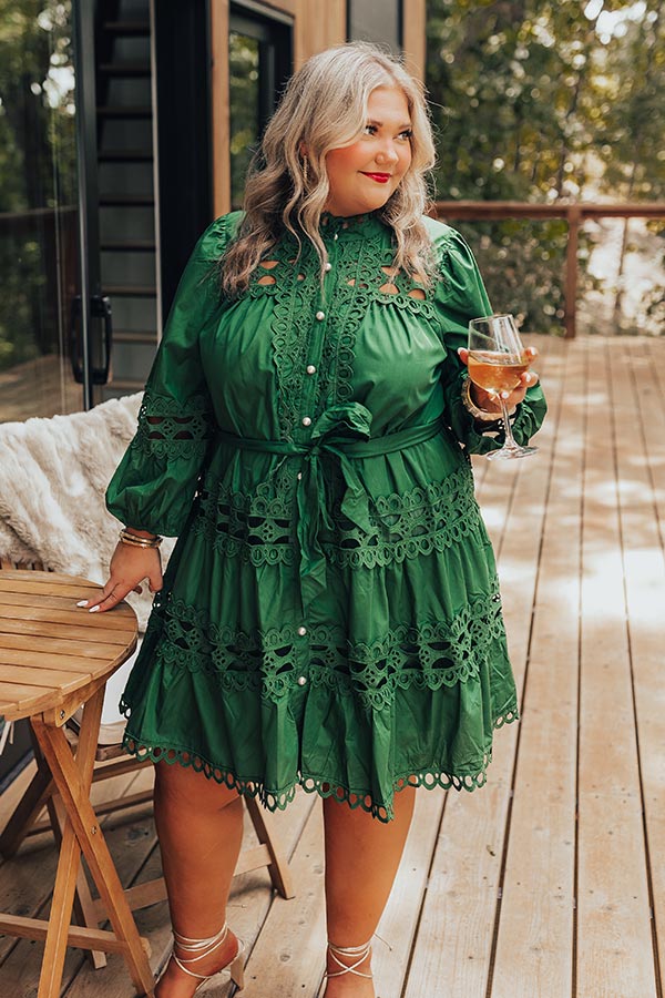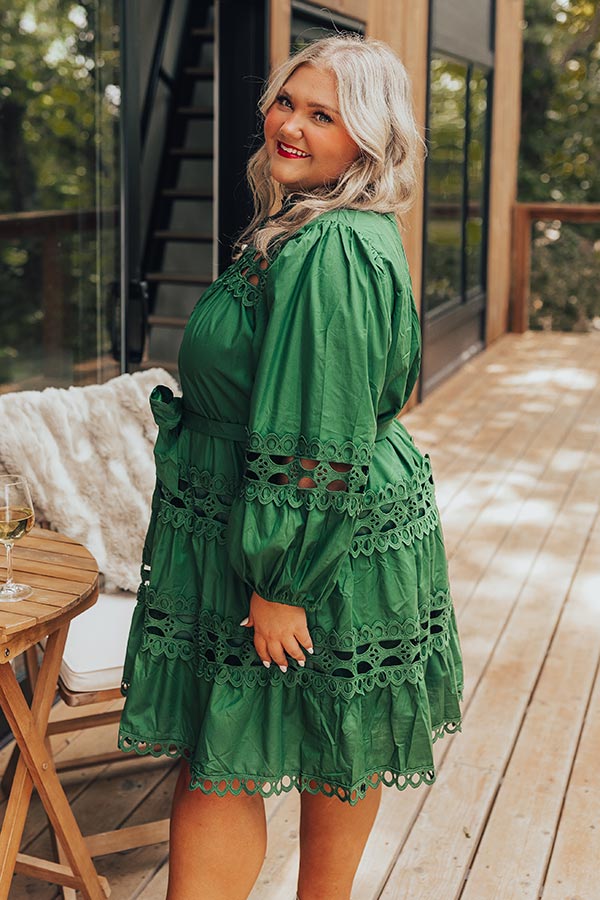 Candlelight Dinner Crochet Mini Dress in Hunter Green Curves