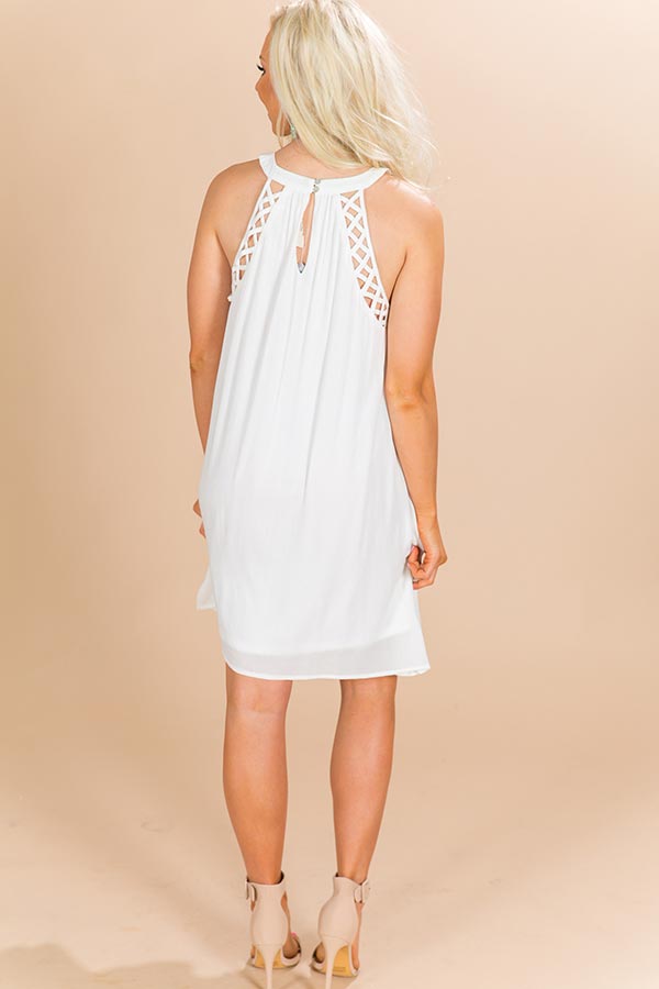 Are you looking for the perfect LWD?! We have found the perfect lightweight beauty for you! This sleeveless babe has a beautiful embroidered neckline and sassy criss-cross cut out trim accenting the arms of the dress.