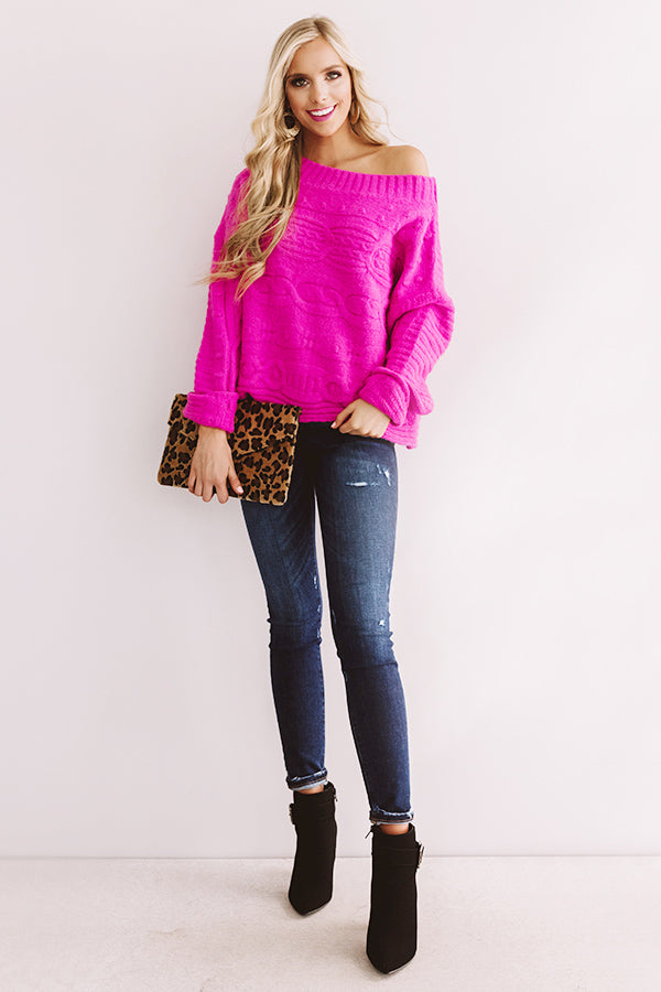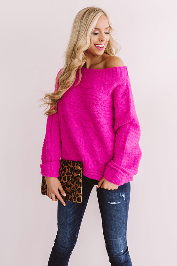 Cappuccino Cozy Cable Knit Sweater In Hot Pink