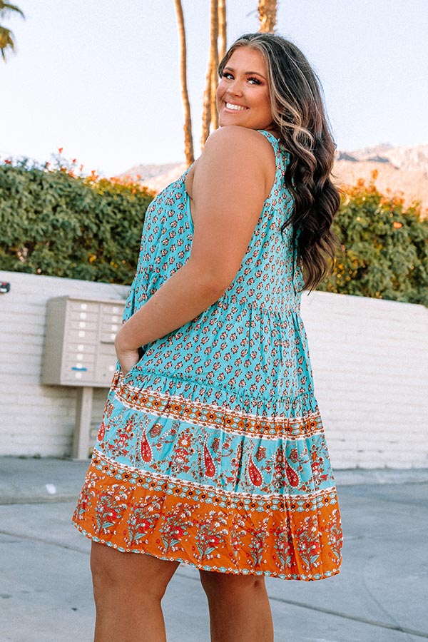 Live life colorfully in our pretty turquoise plus size 'Capri Memories Shift Dress' featuring lightweight flowy material patterned with a beautiful orange floral print, a high neckline with a sleeveless fit, hidden side pockets, a keyhole accented upper back with a tie closure, and a relaxed silhouette that falls into a straight mid-thigh length hemline!