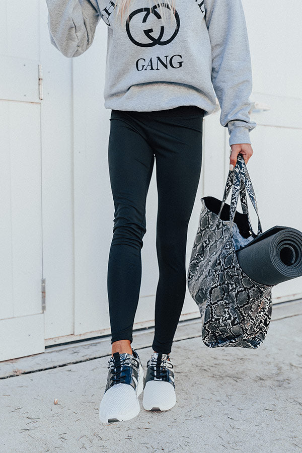 You are sure to be a "cardio queen" when you wear these adorable and sporty black leggings featuring soft stretchy material with a figure hugging fit, a high elastic waistband, and a sleek silhouette that falls into straight ankle length hems! This adorable athleisure piece styles perfectly with a variety of sports bras or tank tops and trendy sneakers for the ultimate workout set! Measurements