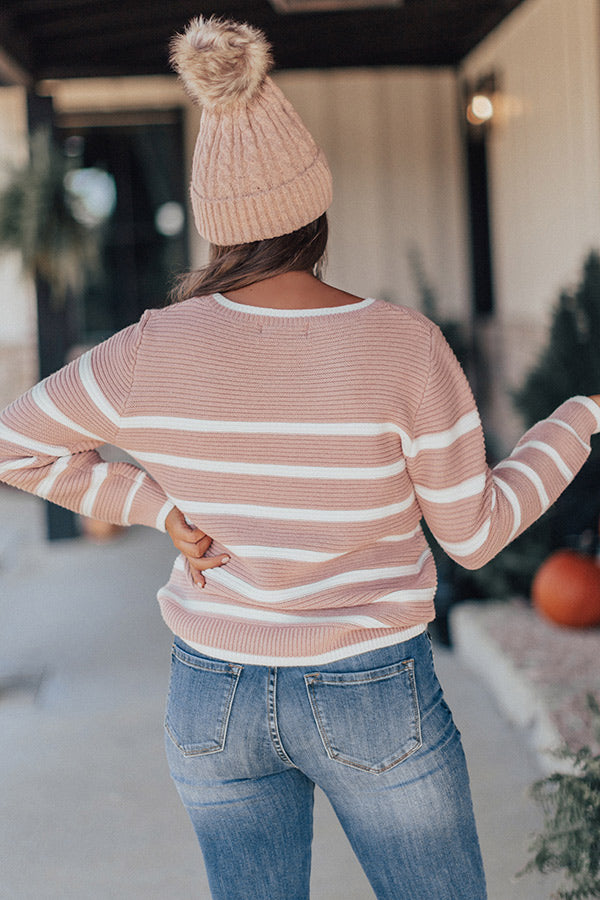 If you are looking to feel some "carefree cuddles," then this adorable blush hued shift sweater is perfect for you! It features soft lightweight tight knit material with subtle ribbed texturing, horizontal white accent stripes, a high rounded neckline, long loose sleeves with fitted cuffs, and a relaxed bodice that falls into a straight hemline! You can style this cold weather essential a variety of ways, like with some distressed ankle skinnies and a neutral bootie, backpack, and beanie, or with some charcoal flares, "The Jess Faux Suede Heel in Natural," and our "Well And Good Plaid Scarf in Dusty Purple!"