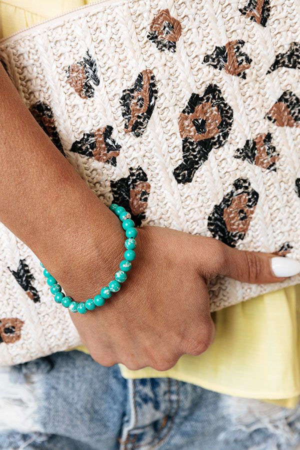 Add a pop of color to any look with our pretty 'Carnation Kisses' bracelet featuring a stretchy silhouette with semi precious turquoise beads!