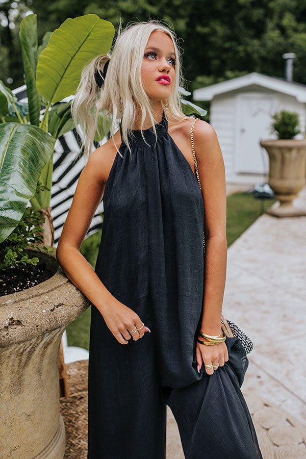 Keep your summer style casual and comfy with our chic black 'Casa On The Coast Jumpsuit' featuring lightweight breezy material, a high neckline with a halter closure, a low open back, and an ultra slouched silhouette that falls into flowy pants with straight ankle-length hemlines!