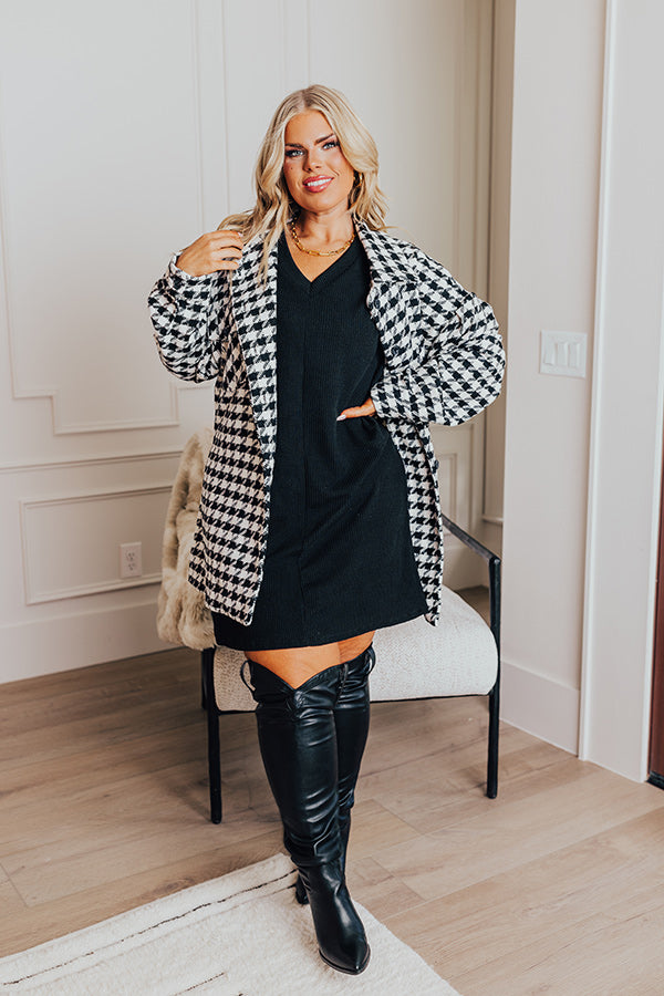 - A relaxed shift dress silhouette that ends in a straight mid-thigh length hemline