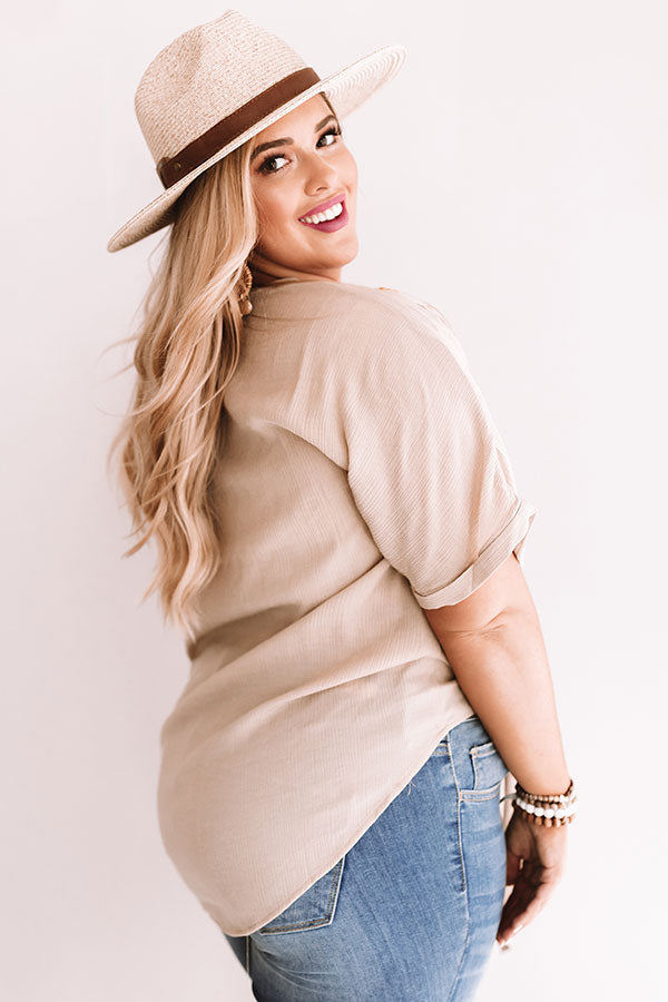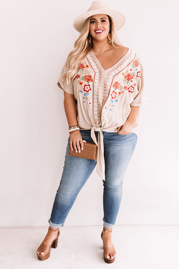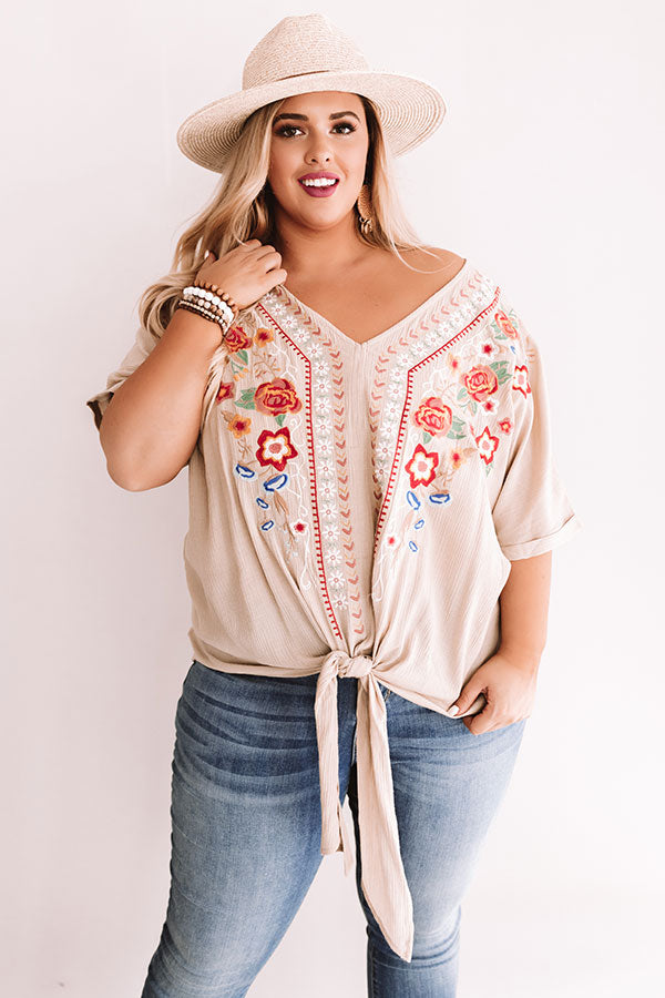 Casual Crush Embroidered Tie Top In Iced Latte Curves