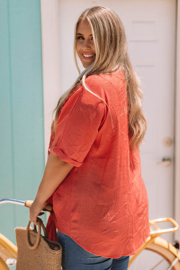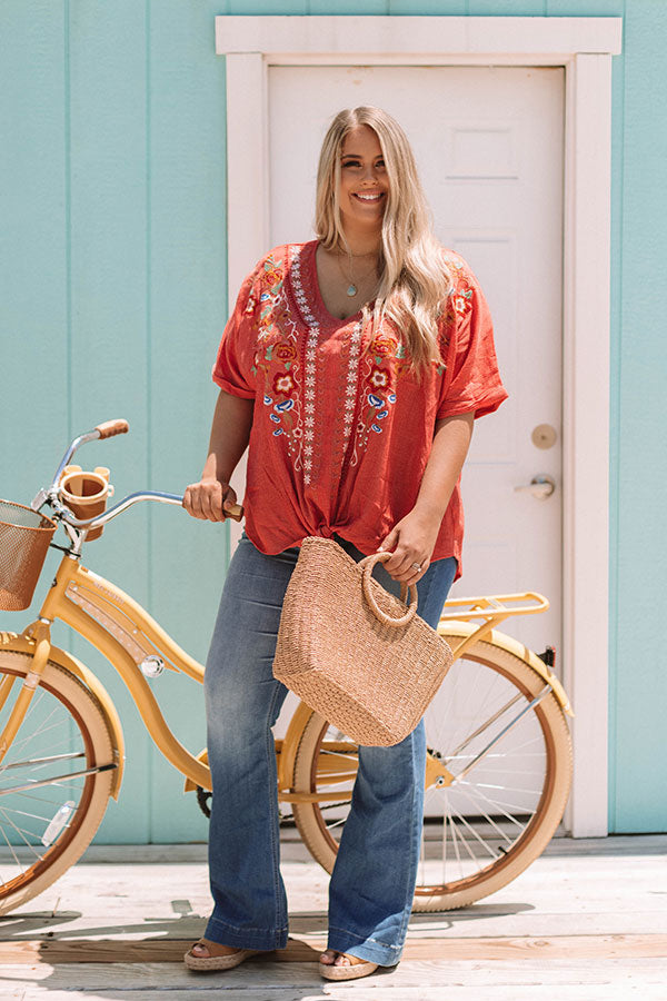 Casual Crush Embroidered Tie Top In Scarlet Curves