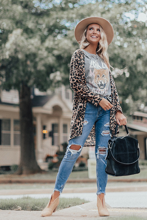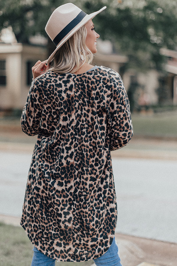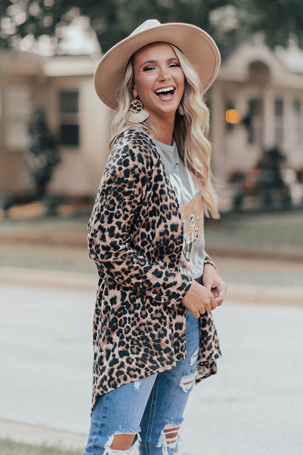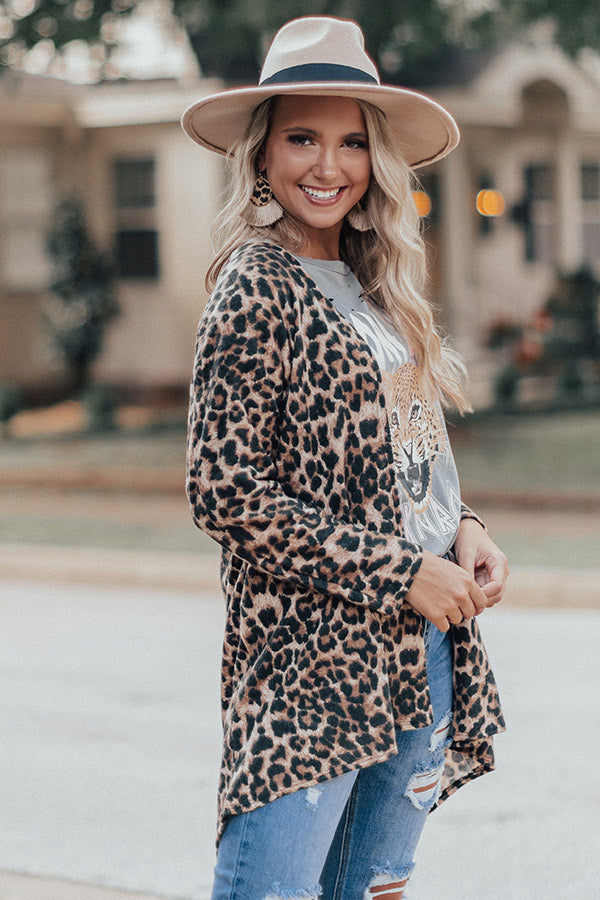 There is no better piece to wear during a "casual weekend" than this adorable cardigan featuring soft lightweight tight knit material patterned with a bold black and brown leopard print, long semi-loose sleeves, and a relaxed open front silhouette that falls into a straight upper thigh length hemline! You can style this versatile piece with just about anything from a basic tank to a sweater, jeans to skirts or dresses, booties to wedges or sandals, clutches to totes, and hats to earrings! Measurements
