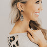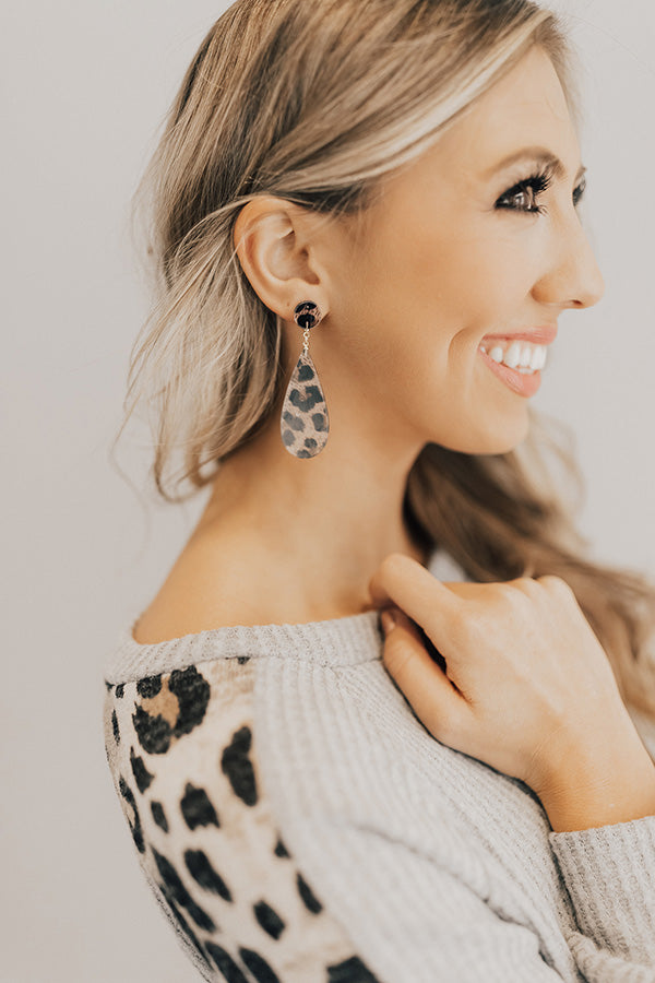 Everyone will be "casually crushing" on you when you accessorize with these grey statement earrings featuring a bold leopard print on the circle studs and dangling teardrop shaped pendant!