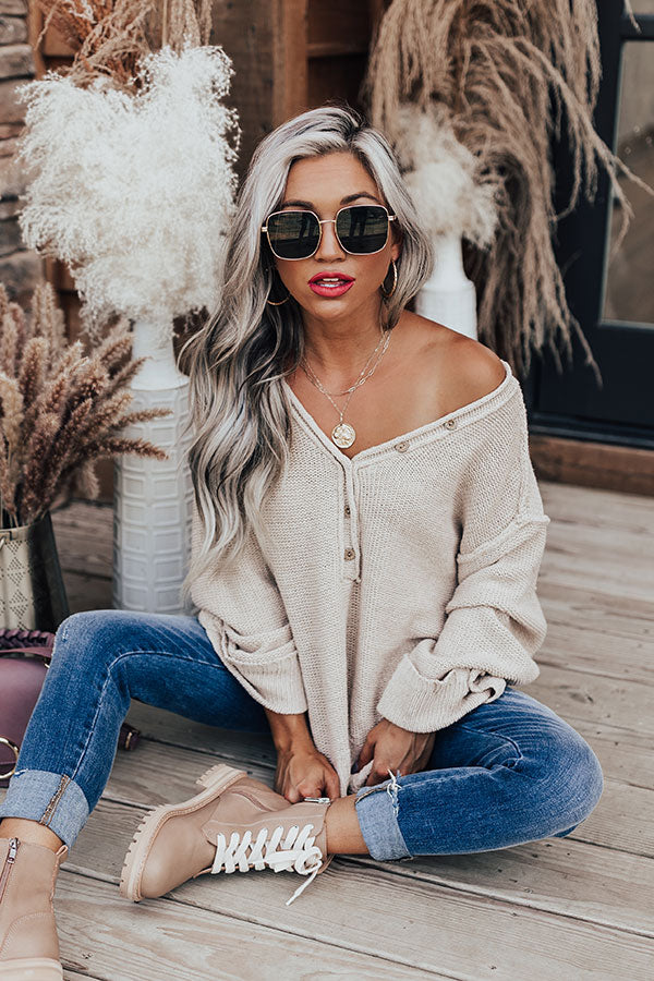 Catch A Chill Knit Top In Beige