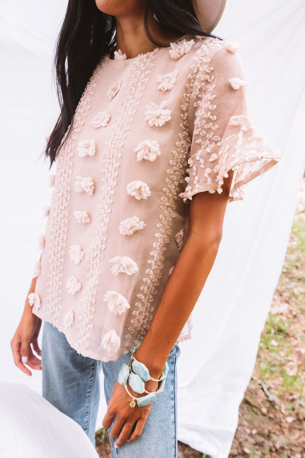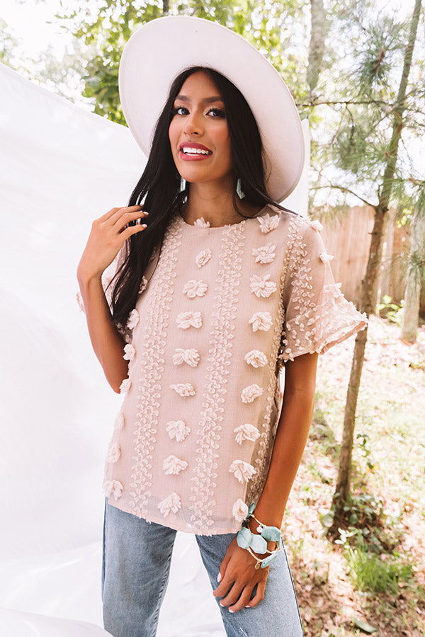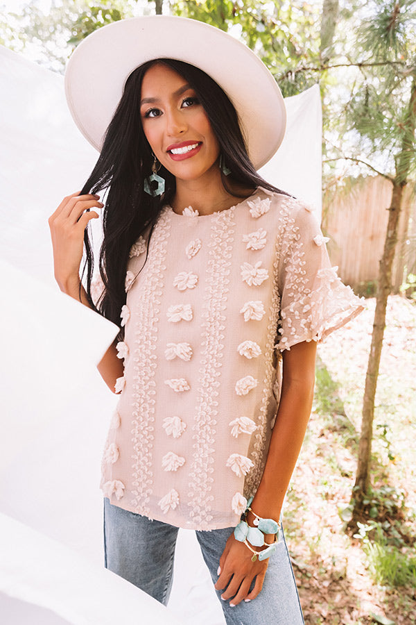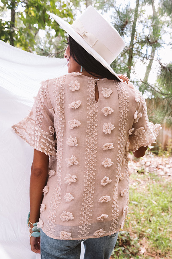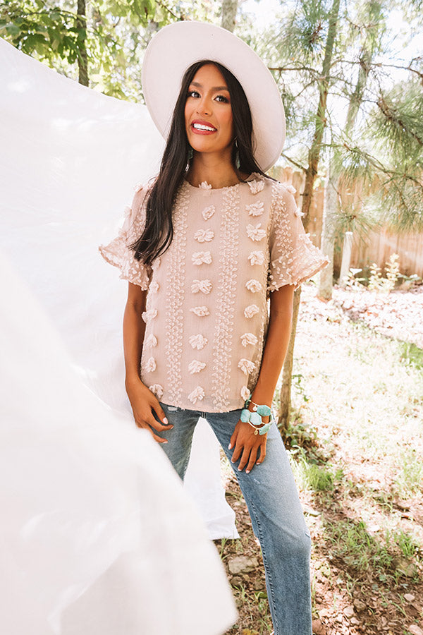 Wearing this adorable taupe colored shift top will give you a "cause for applause" with its lightweight semi-sheer layered material patterned with large and small polka dot texturing, a high rounded neckline, short loose sleeves with oversized flared cuffs, a keyhole accented upper back with a button closure, and a relaxed silhouette that falls into a straight hemline! We have styled this unique piece with some frayed skinnies and a wool hat, but you can also wear it with some distressed black shorts, "The Jess Faux Leather Heel in Warm Taupe," and our "Chic Harmony Fringe Tote in Black!"