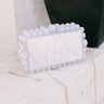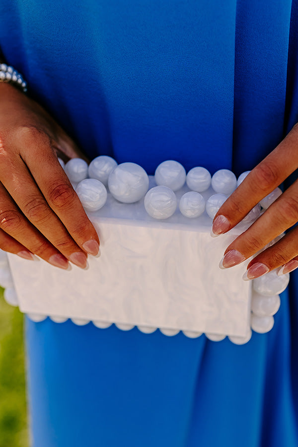 - This eye-catching clutch will keep you looking stylish! - Material: Acrylic - Size: Width - 8.75 inches and Height - 5.25 inches - Detachable chain strap - An unlined interior - Ball clasp closure