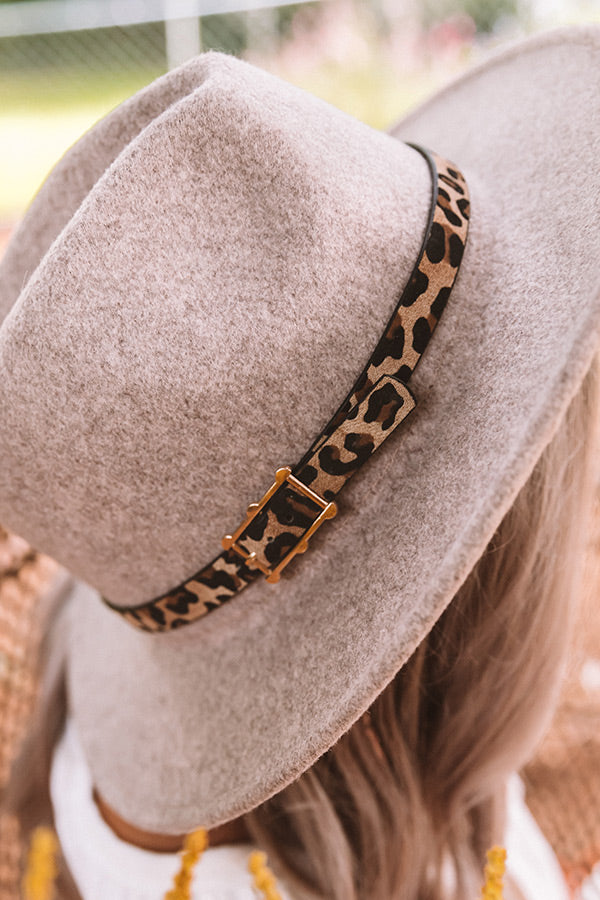 You are sure to look like a celeb when you top off your look with this adorable birch colored fedora featuring lightweight wool material, a wide stiff brim, and a bold leopard accent band!