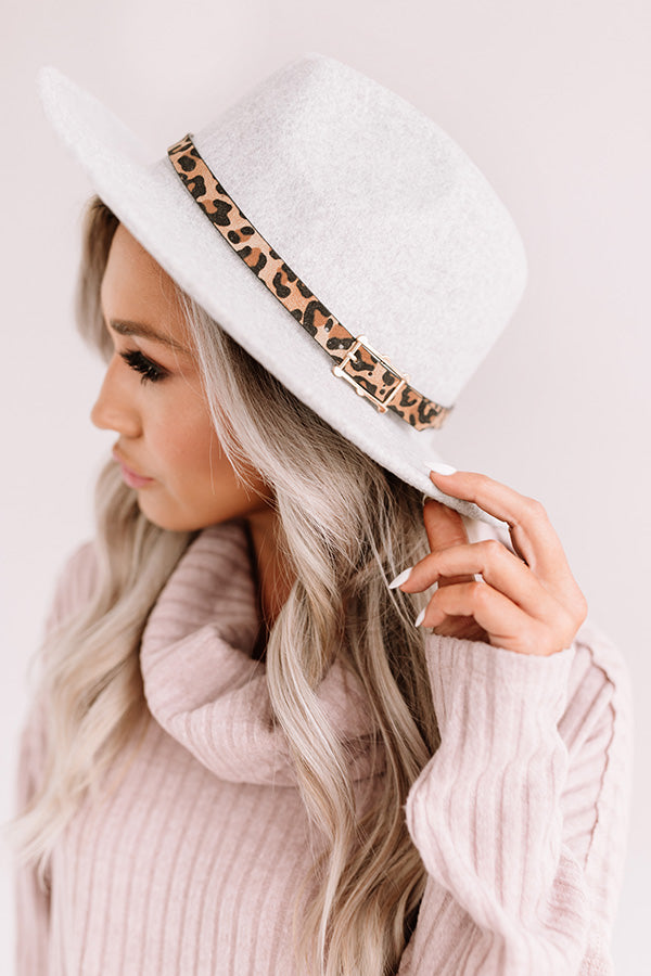 You are sure to look like a celeb when you top off your look with this adorable grey fedora featuring lightweight wool material, a wide stiff brim, and a bold leopard accent band!