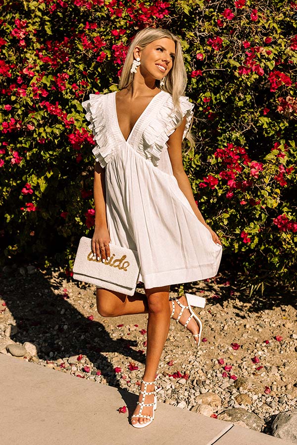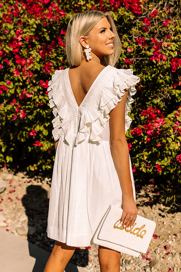 Life's a party, so celebrate it with this darling white romper featuring lightweight material, a deep v-cut neckline and upper back, wide shoulder straps with oversized ruffled cap sleeves, and a relaxed silhouette that falls into a straight mid-thigh length hemline!