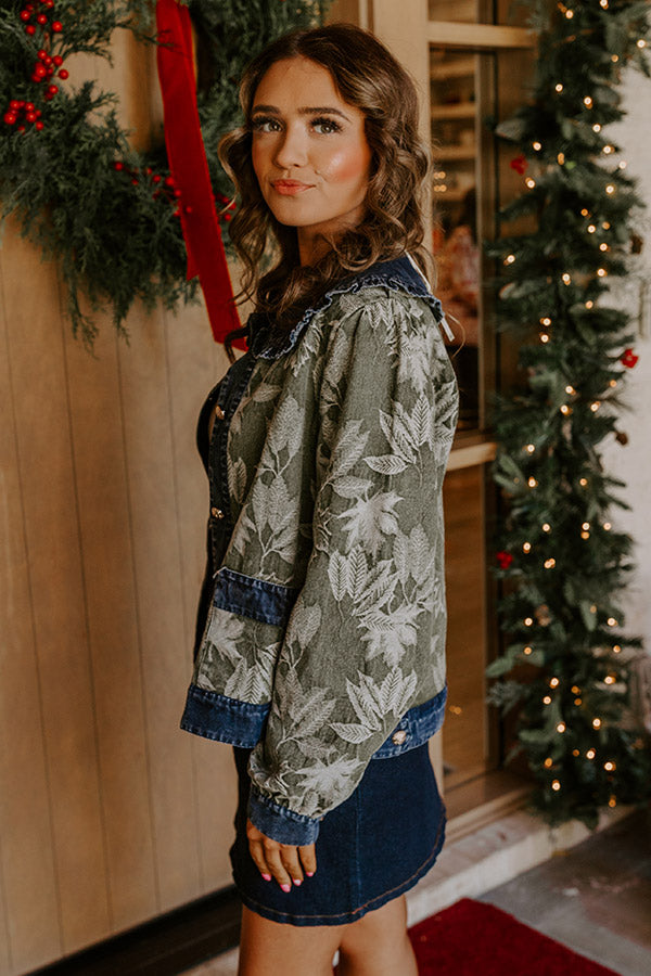 Central Park Leaves Jacquard Denim Jacket in Olive