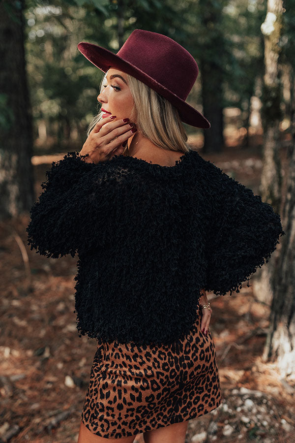 Leaves are falling and autumn is calling! So snuggle up in our adorable black "Central Park Leaves" sweater featuring ultra soft lightweight material with popcorn knit texturing, a high rounded neckline, long loose sleeves, and a relaxed silhouette that falls into a straight hemline! Measurements