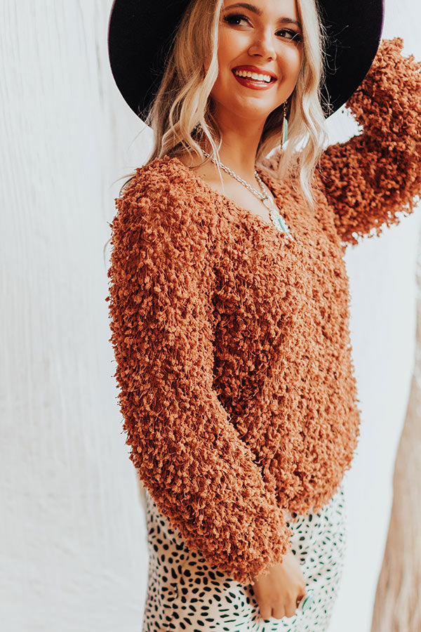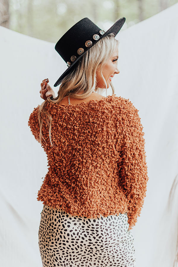 Central Park Leaves Popcorn Knit Sweater In Rust