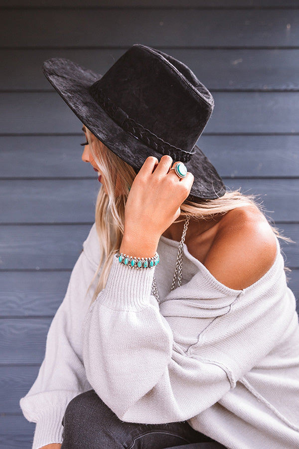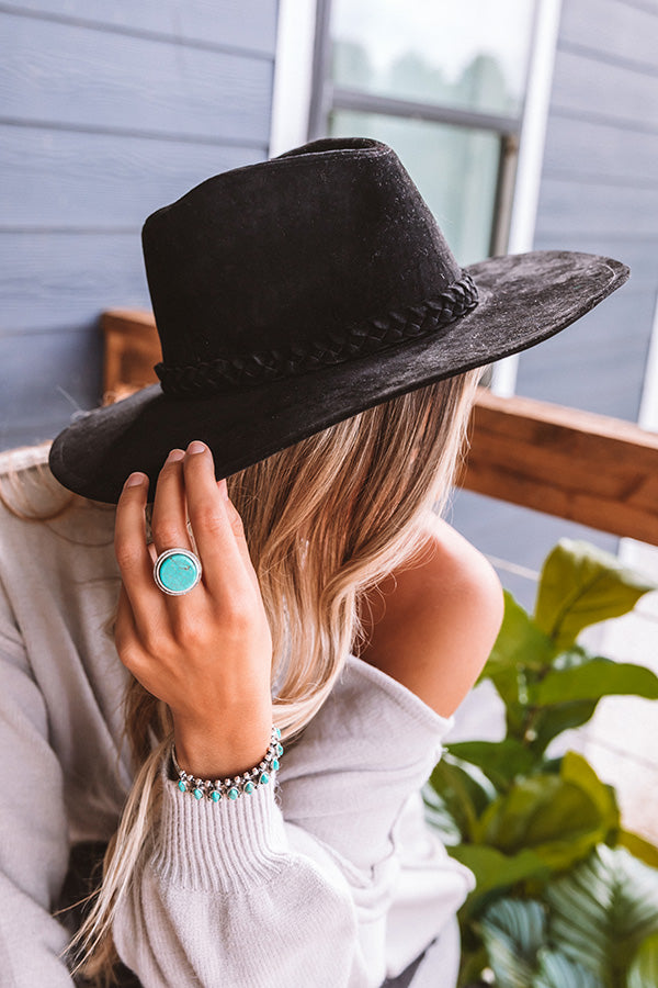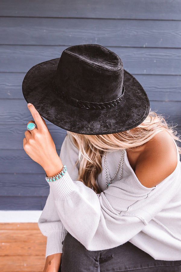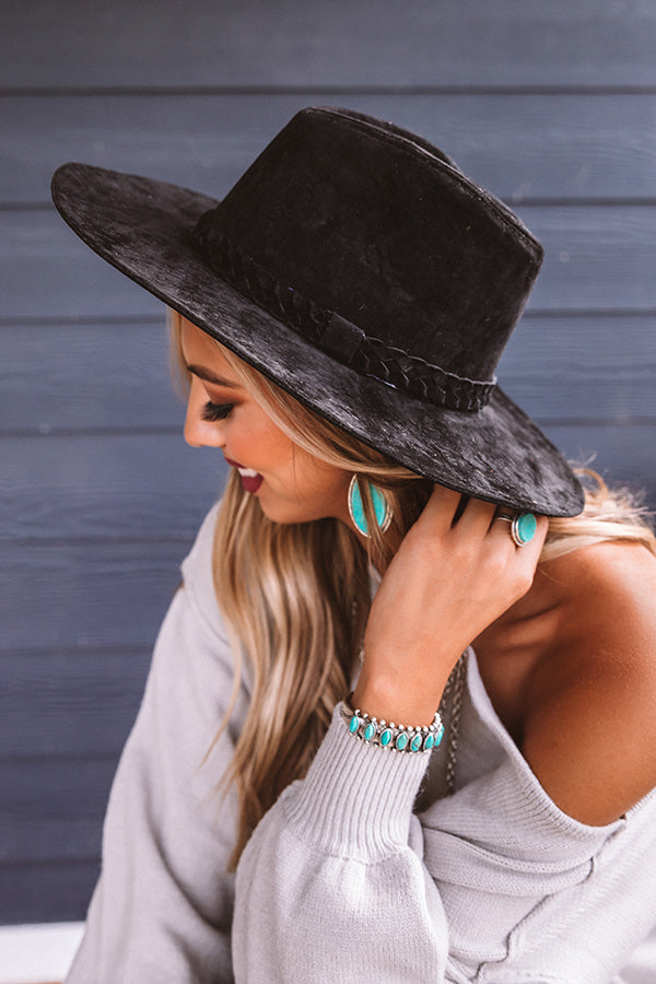 You can never have too many hats, especially when they are as chic as our black "Central Park Leaves" fedora featuring soft lightweight velvet material, a wide stiff brim, and a braided accent band!