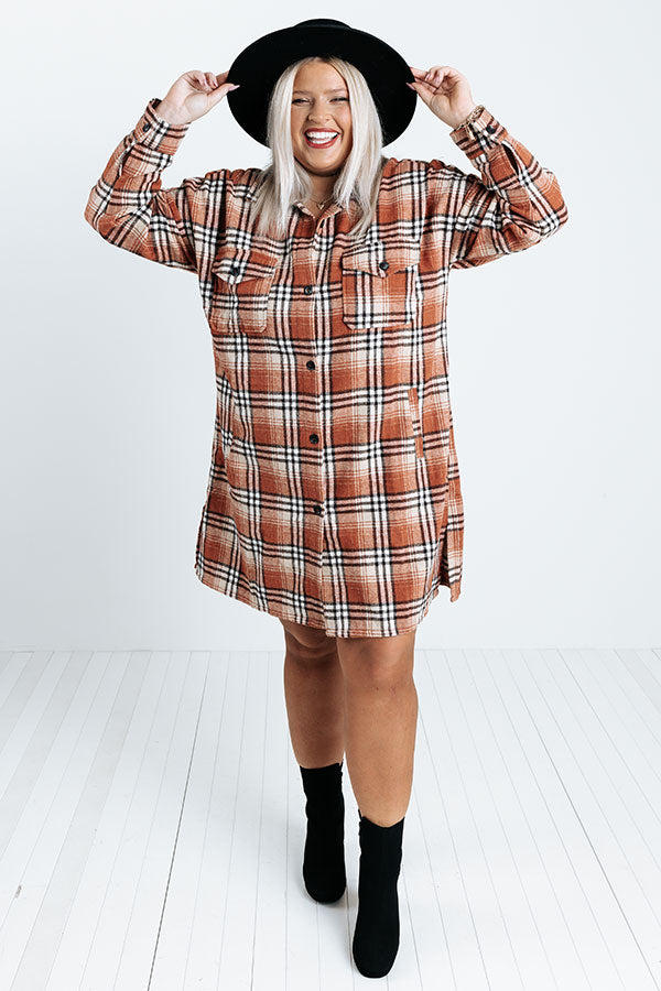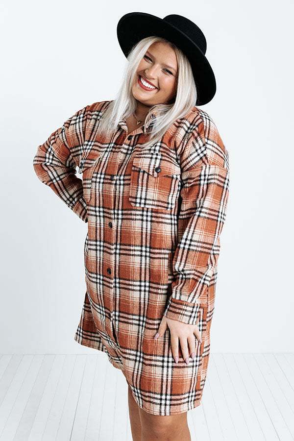 Central Park Perks Plaid Dress In Rust Curves Image - 1