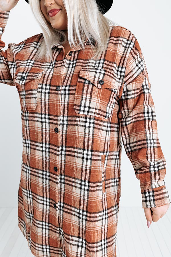 Believe us when we say our pretty plus size rust colored 'Central Park Perks' dress is a fall staple with its lightweight but warm material, black and white plaid print, button down front with a collared neckline, long loose sleeves with button closure cuffs, two accent chest pockets with flap closures, and relaxed silhouette that falls into a straight knee-length hemline!