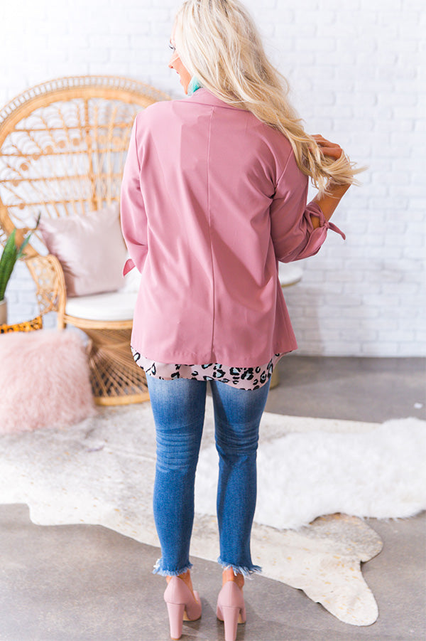 Be the CEO of Chic in this feminine blazer! This collared open front blush blazer has angled flap pockets & quarter-length sleeves that tie at the cuff. Style with a classy chiffon blouse for a wow-worthy work look your co-workers will be wild out!