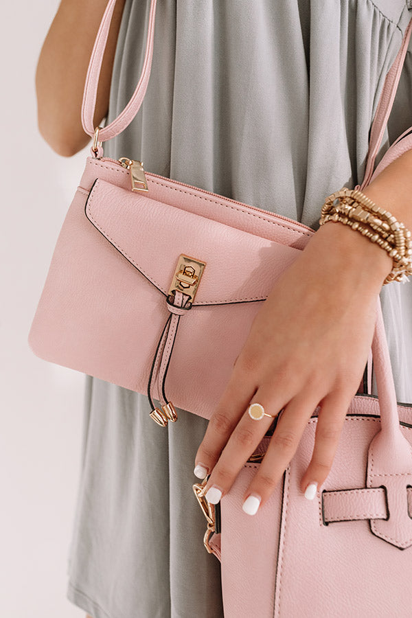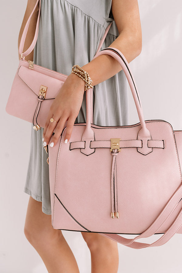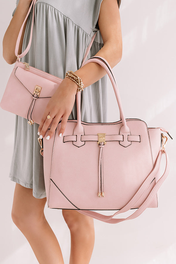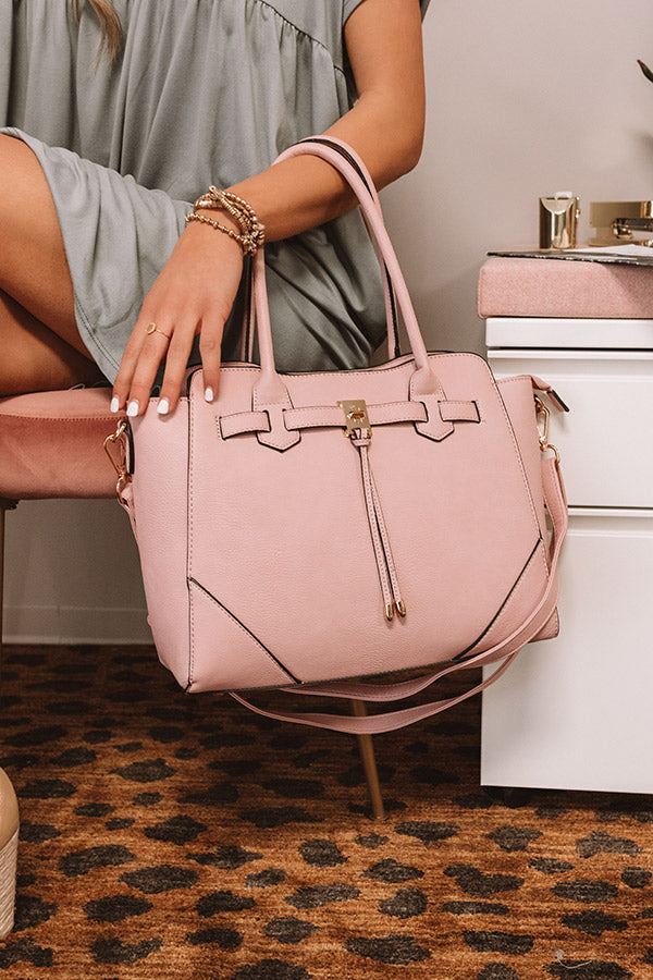 You will surely look like "CEO material" when you accessorize with this chic pink tote featuring sleek faux leather material, an adjustable and removable shoulder strap, two short handles, gold hardware, and a spacious fully lined rectangular pouch with a zip closure and additional inside pockets! PLUS, it includes a removable crossbody with a flap closure and an adjustable shoulder strap!