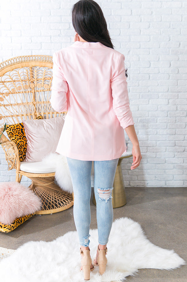 Be the "Trail-Blazer" of "office chic" in this sophisticated sweetie! This wear-anywhere blazer has ruched quarter-length sleeves, a collared neckline & a classic open front blazer silhouette with faux welted pockets. The "CEO Of Chic Blazer" is so versatile that it is sure to become your new favorite go-to for work, weekends & everything in-between!