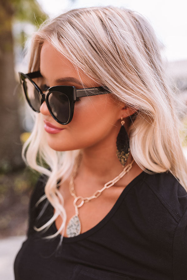 You are sure to be the "CEO of chic" when you accessorize with these stunning sunnies featuring black cat eye frames and dark tinted lenses!