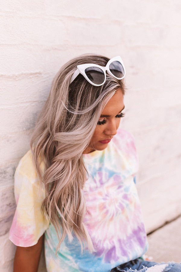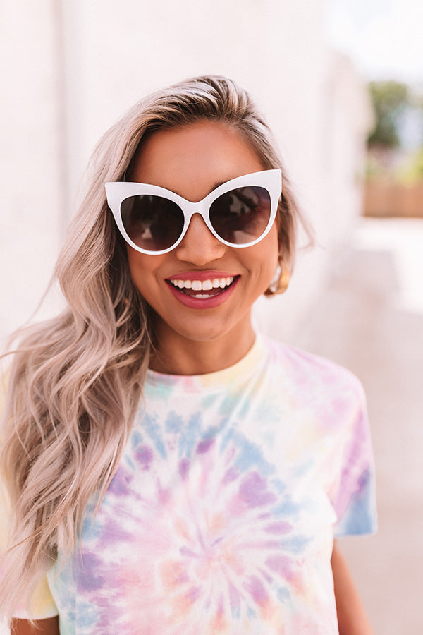 You are sure to be the "CEO of chic" when you accessorize with these stunning sunnies featuring white cat eye frames and dark tinted lenses!