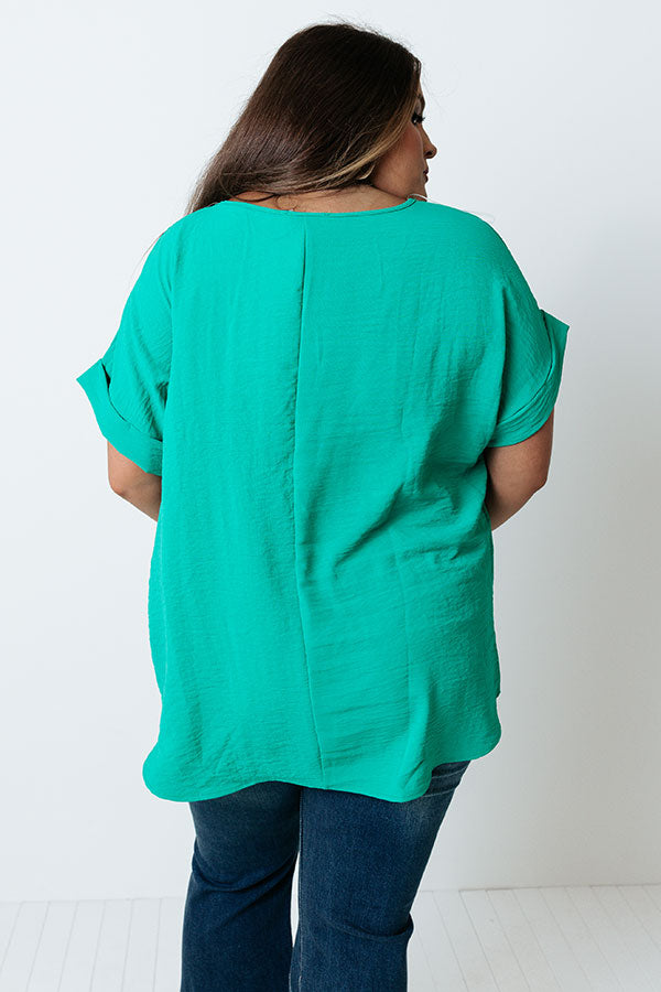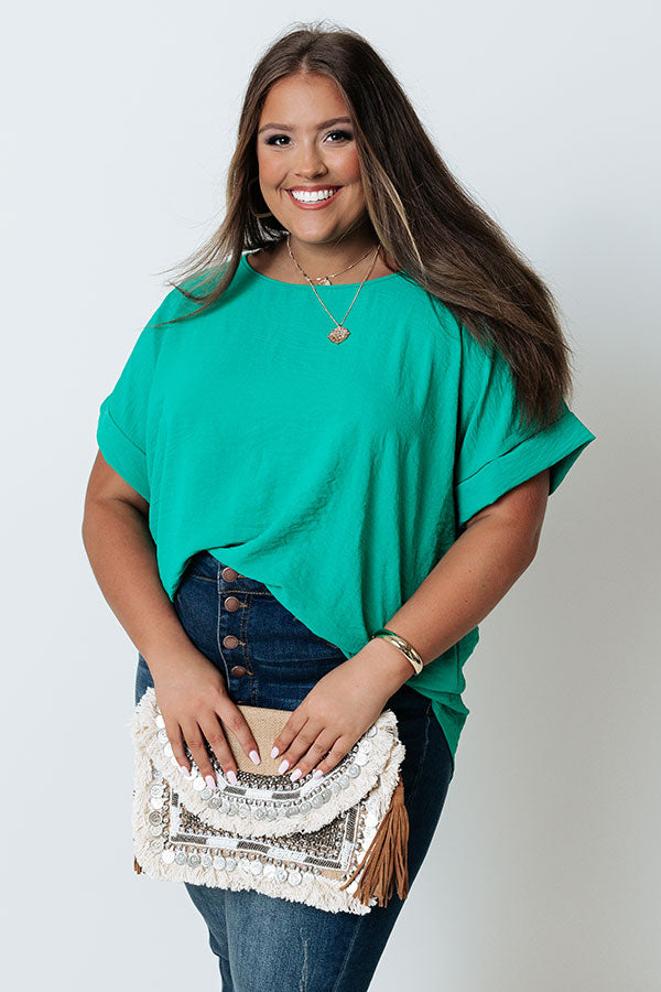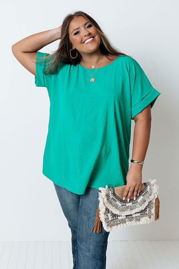 Champagne And Peonies Shift Top In Emerald Curves