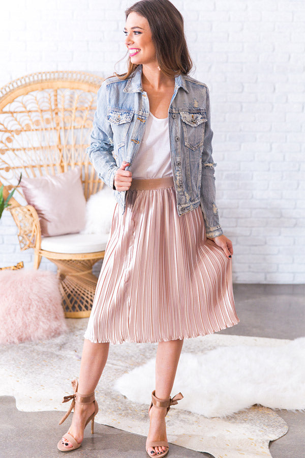 Just add champagne & twirl through the night in this marvelous midi! This satin pleated midi skirt has an elastic banded waistline & twirl-worthy skirt that's easy to dress up or down. Style with a tank & a jean jacket by day... Or a sequin crop top or lace blouse by night, for a variety of luxe looks that are sure to steal the show wherever you go!