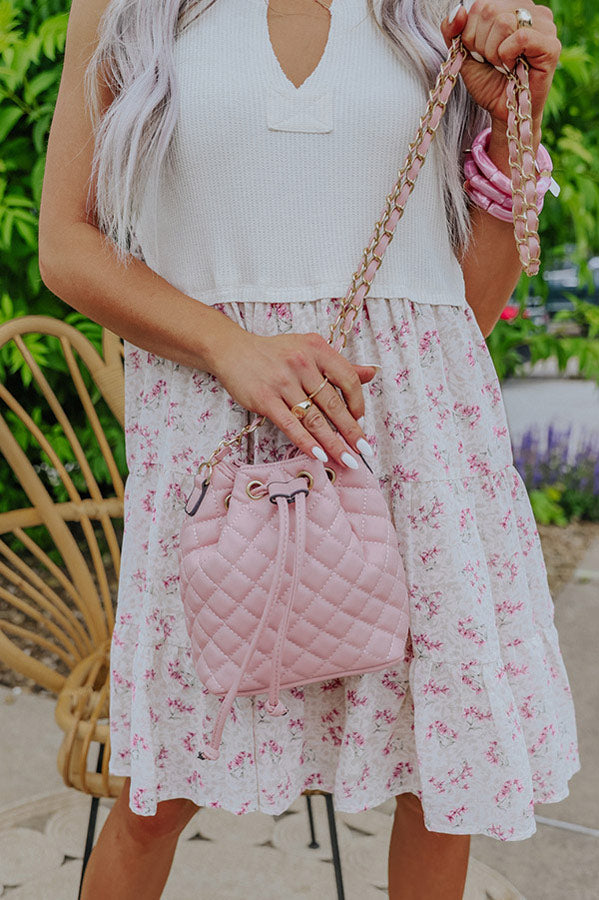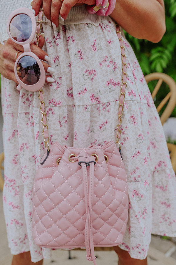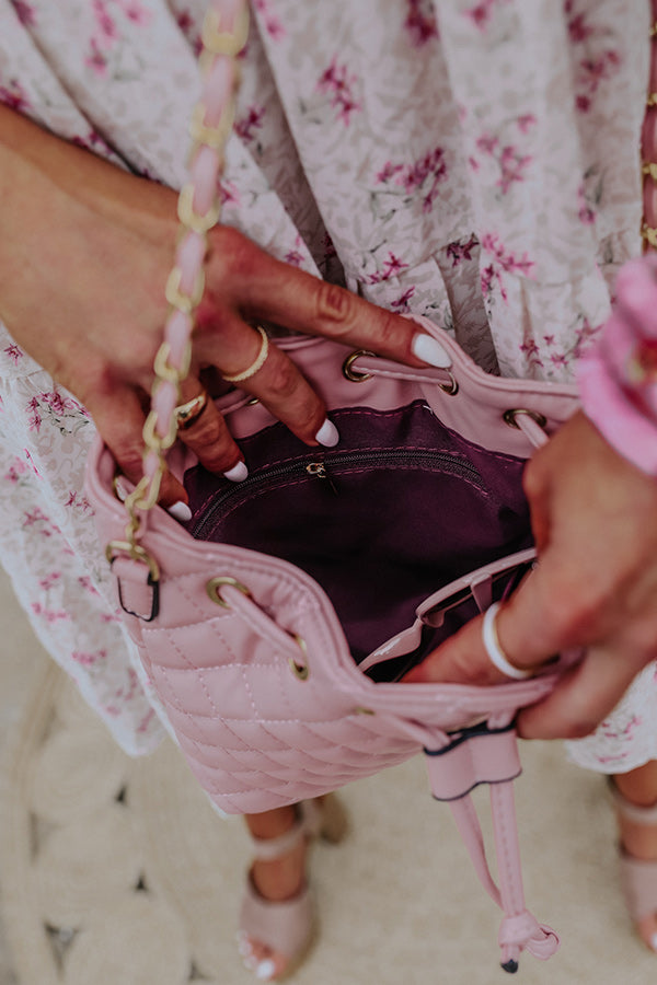 Complete your look in the best way with our trendy blush 'Champagne Craving' crossbody featuring faux leather material with quilted texturing, a chain link shoulder strap, and a lightweight fully lined bucket bag silhouette with a cinched closure and an additional zip closure pocket!