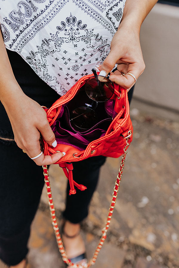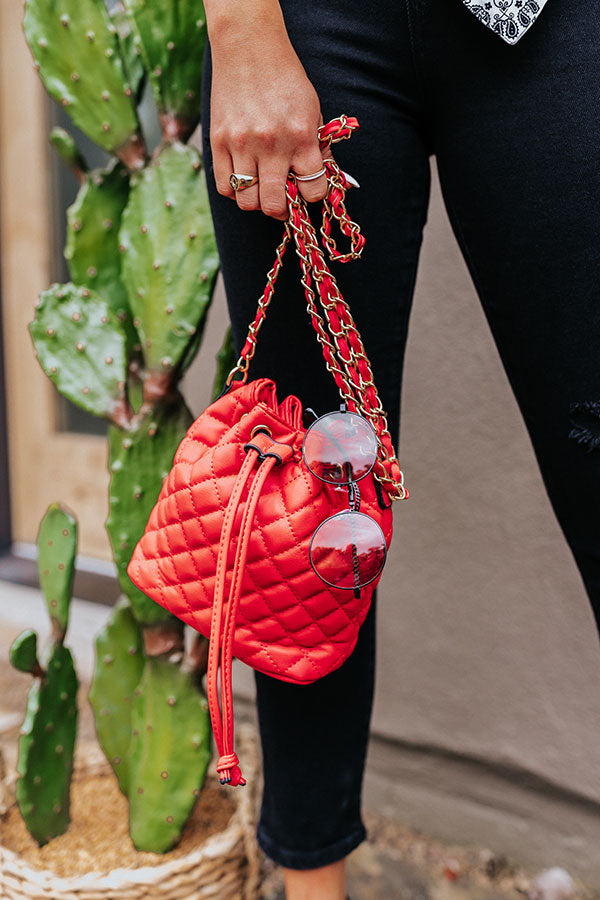 Complete your look in the best way with our trendy red 'Champagne Craving' crossbody featuring faux leather material with quilted texturing, a chain link shoulder strap, and a lightweight fully lined bucket bag silhouette with a cinched closure and an additional zip closure pocket!