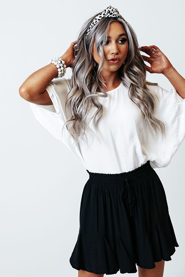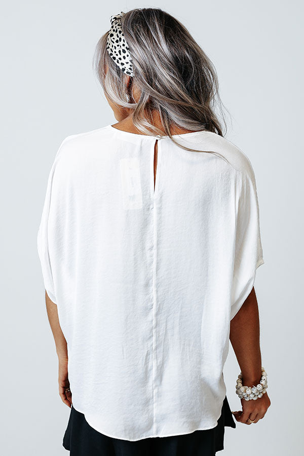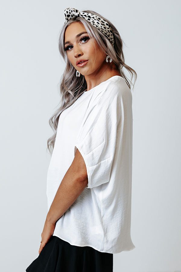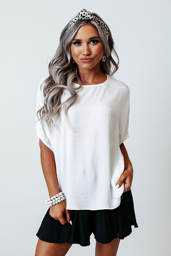 Champagne Craving Satin Shift Top In White