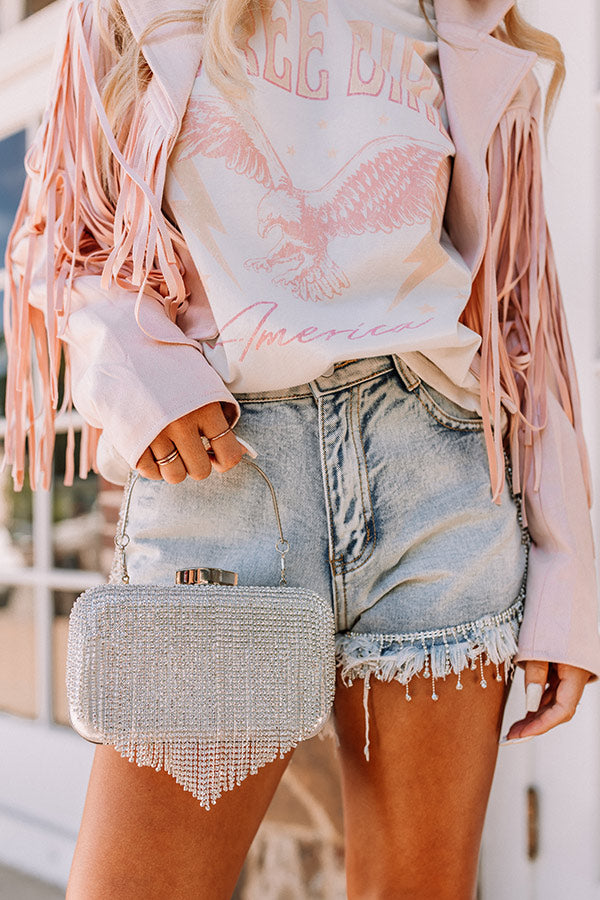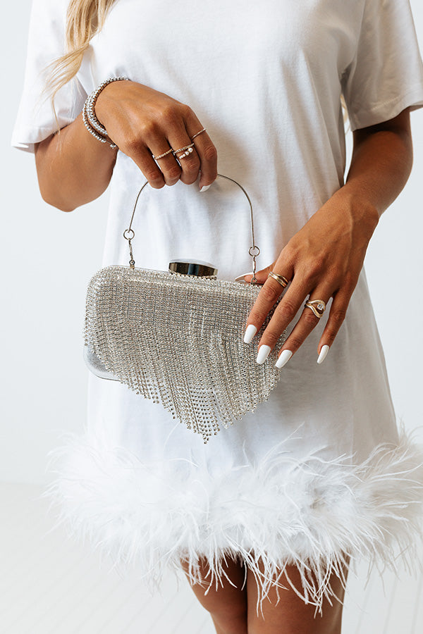 Champagne Life Rhinestone Clutch In Silver