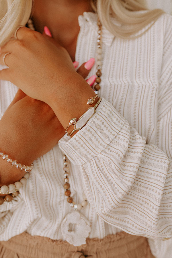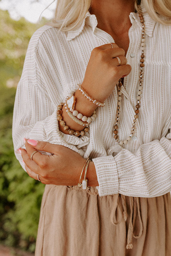 Your look is sure to be elevated when you accessorize with our pretty 'Champagne Life' bracelet set featuring six stretch strands with a variety of beads and semi precious stone detailing!