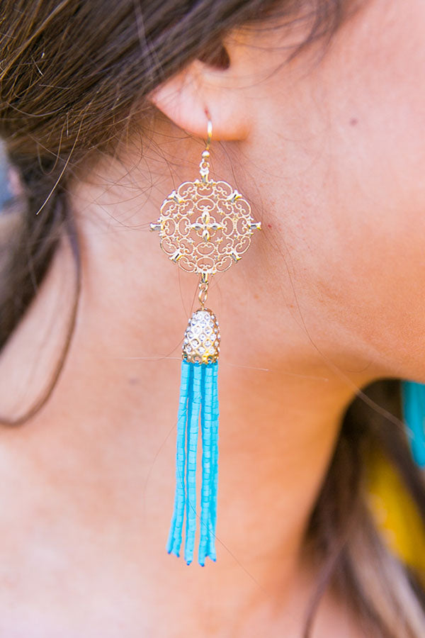 Champagne Nights Tassel Earrings in Turquoise