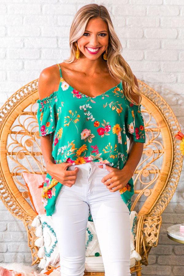 Tis' the season for champagne & cold-shoulders! The "Champagne Season Shift Top" has thin straps that fall into a flirty flutter cold-shoulder sleeve & a relaxed floral printed polyester silhouette that can easily be dressed up or down. Add a pop of color to your look with a colorful statement earring, for a feminine floral look that is just flourishing with style!
